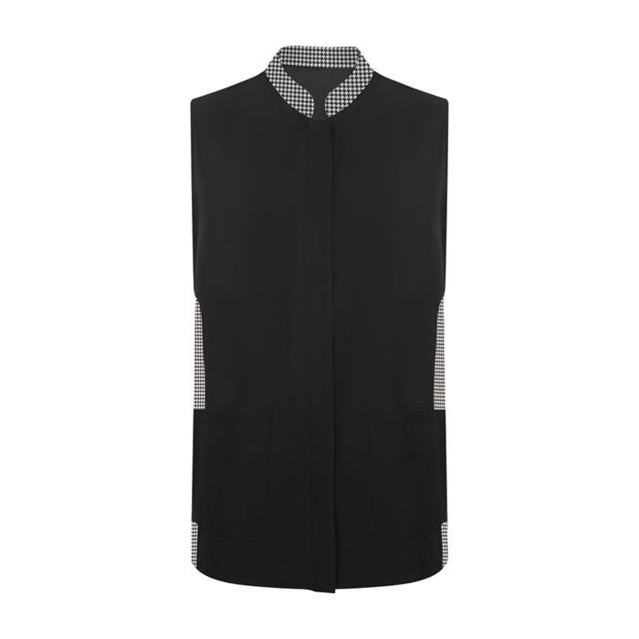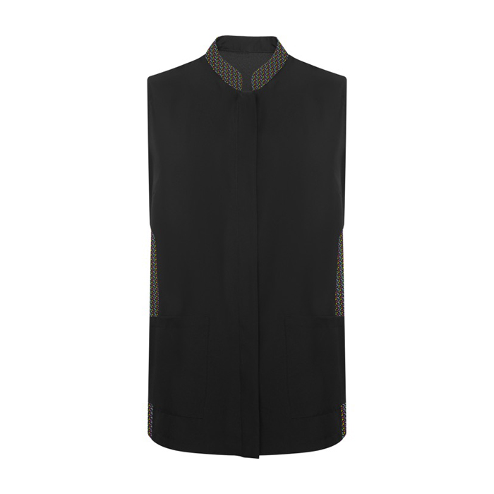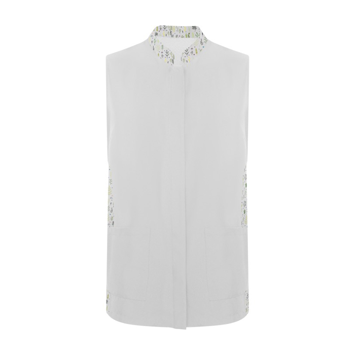 Bata de mujer sin mangas fabricada en Europa por Roly, confeccionada con un gramaje de 130.0. Presenta un diseño moderno con cuello mao y un cierre central de botones automáticos ocultos, lo que facilita su uso diario. Los costadillos laterales y las pinzas en el pecho aseguran un ajuste cómodo y favorecedor. Además, cuenta con dos prácticos bolsillos frontales de parche, ideales para guardar herramientas o accesorios necesarios en el trabajo. Perfecta para empresas que buscan uniformar a su personal con estilo y funcionalidad, esta bata es ideal para sectores como la hostelería, la salud o el comercio.