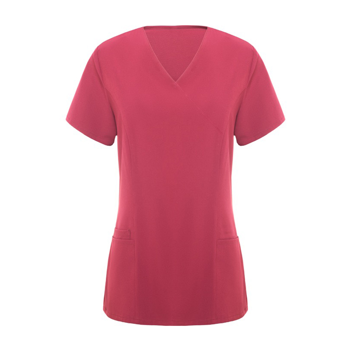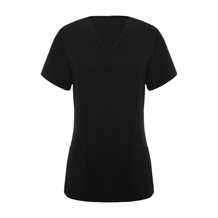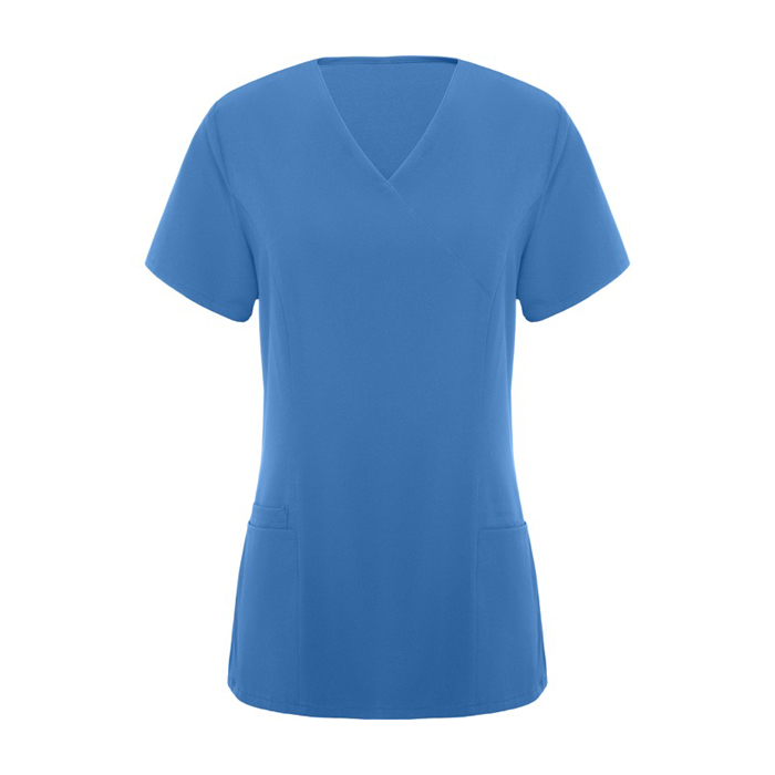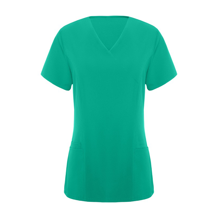 - Casaca de servicios de manga corta con escote de pico cruzado