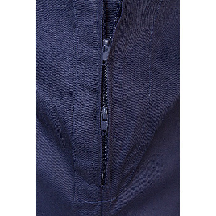 Mono de sarga de la marca Velilla, confeccionado en una mezcla de algodón (35%) y poliéster (65%), ideal para entornos laborales exigentes. Su diseño incluye una cremallera central asimétrica de doble cursor, que facilita el ajuste y la ventilación. La cintura elástica y los puños de canalé aseguran un ajuste cómodo y flexible. Equipado con cinco bolsillos estratégicamente ubicados: uno en el pecho, dos inferiores, uno trasero y otro en la pernera derecha, ofrece máxima funcionalidad para guardar herramientas o dispositivos. Suministrado en bolsa de plástico, este mono unisex es perfecto para empresas que buscan uniformes prácticos y versátiles. Ideal para personal de mantenimiento, logística o eventos corporativos.