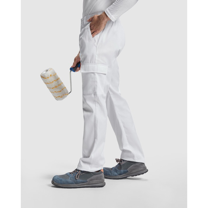 Pantalón largo de corte recto fabricado en un tejido resistente, ideal para el entorno laboral. La cinturilla ajustable elástica en la parte trasera asegura un ajuste cómodo durante toda la jornada. Equipado con dos bolsillos frontales para acceso rápido, un bolsillo lateral con solapa y cierre de velcro para mayor seguridad, y un bolsillo lateral derecho estrecho sin solapa para herramientas o dispositivos pequeños. Además, cuenta con un bolsillo funcional trasero. Con un gramaje de 240.0, este pantalón de la marca Roly es robusto y duradero. Perfecto para uniformes de trabajo o como parte de un kit de merchandising corporativo.