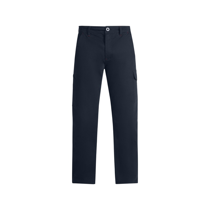 Pantalón largo de hombre de la marca Roly, confeccionado con un tejido grueso que incluye elastano para mayor flexibilidad. La cintura es ajustable y elástica en los laterales, proporcionando un ajuste cómodo y seguro. El tejido es resistente y cómodo, ideal para largas jornadas laborales. Las costuras están reforzadas en la entrepierna interior y laterales con triple aguja, garantizando durabilidad. Presenta un diseño funcional con dos bolsillos frontales, un bolsillo portamonedas, dos bolsillos traseros (el derecho con tapeta y cierre de velcro) y dos bolsillos laterales (el derecho para cúter y el izquierdo con solapa y cierre de velcro). Este pantalón es perfecto para personal técnico y puede personalizarse con el logo de la empresa, siendo una opción práctica para uniformes corporativos.