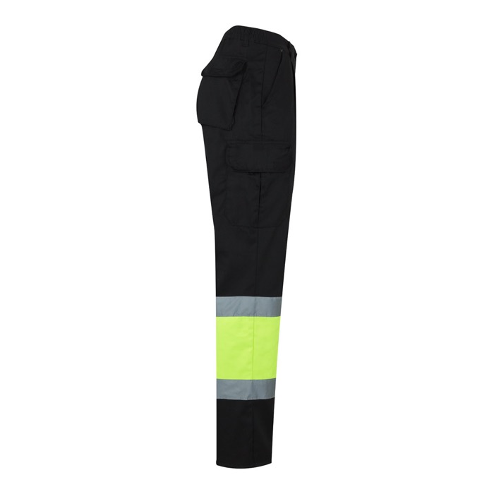 Pantalón multibolsillos de sarga bicolor, fabricado en una resistente mezcla de algodón (20%) y poliéster (80%). Diseñado para ofrecer comodidad y funcionalidad, cuenta con una cinturilla elástica que se adapta a diferentes tallas y movimientos. Las bandas reflectantes en el bajo del pantalón mejoran la visibilidad en entornos de trabajo con poca luz. Equipado con seis bolsillos: dos franceses, dos de fuelle laterales y dos de fuelle traseros, proporciona amplio espacio para herramientas y objetos personales. Ideal para empresas que buscan uniformes prácticos y versátiles, este pantalón unisex de la marca Velilla es perfecto para personal de logística, mantenimiento o cualquier sector que requiera movilidad y acceso rápido a herramientas.