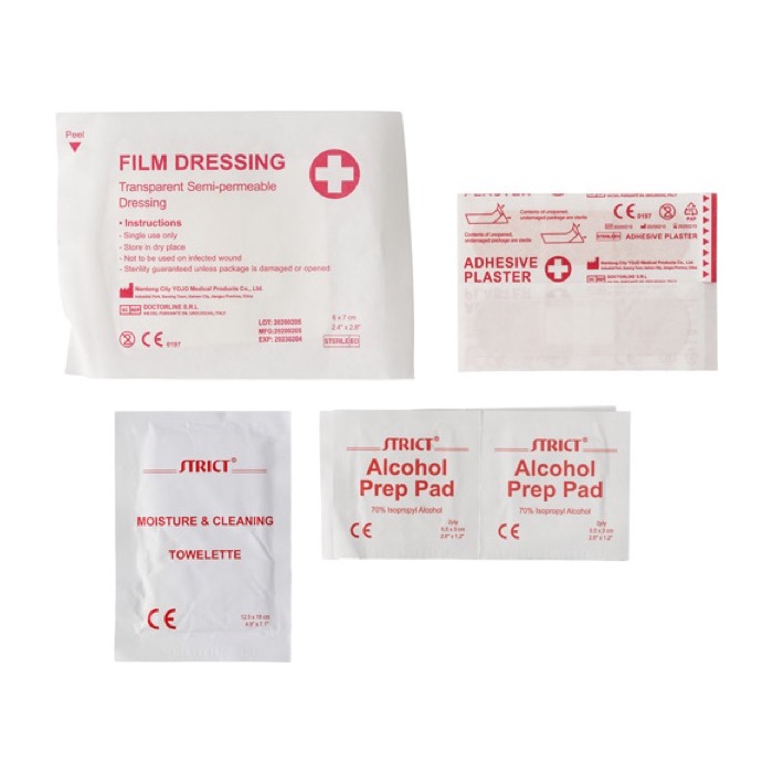 - Incluye toallita limpiadora, tiritas, toallitas de alcohol