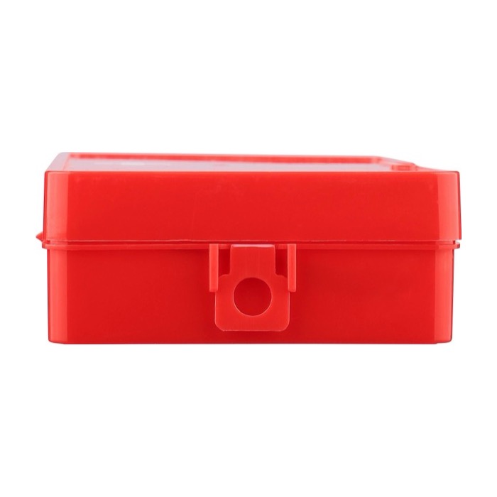 Botiquín de plástico en estuche rojo con cruz blanca, pensado para tener a mano lo básico ante pequeñas incidencias. El formato compacto facilita guardarlo en el coche, un cajón de oficina o una mochila de trabajo. Incluye 15 piezas: esponjas no tejidas, vendas, toallitas con alcohol, tijera, rollo de vendaje de gasa (450cm) y rollo de esparadrapo (450cm). El cierre de clip ayuda a mantener el contenido ordenado y protegido. Útil para acciones de prevención en oficina, ferias o formaciones.