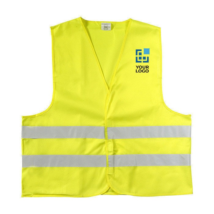 Chaleco de alta visibilidad fabricado en poliéster (150D), ideal para garantizar la seguridad en entornos laborales. Disponible en tres tallas: M (65x59 cm, Ref. 41590), XL (70,5x64 cm, Ref. 41591) y XXL (76,5x71,5 cm, Ref. 41592), adaptándose a diversas necesidades corporativas. Su diseño unisex lo hace versátil para cualquier equipo de trabajo. Cada chaleco se suministra en una bolsa individual, facilitando su distribución y almacenamiento. Perfecto para campañas de seguridad o como equipamiento estándar para empleados en sectores industriales.