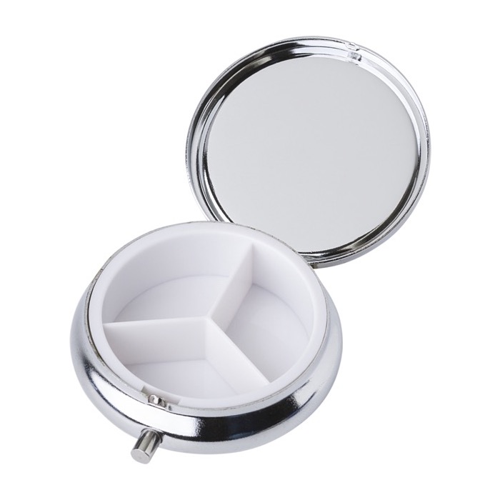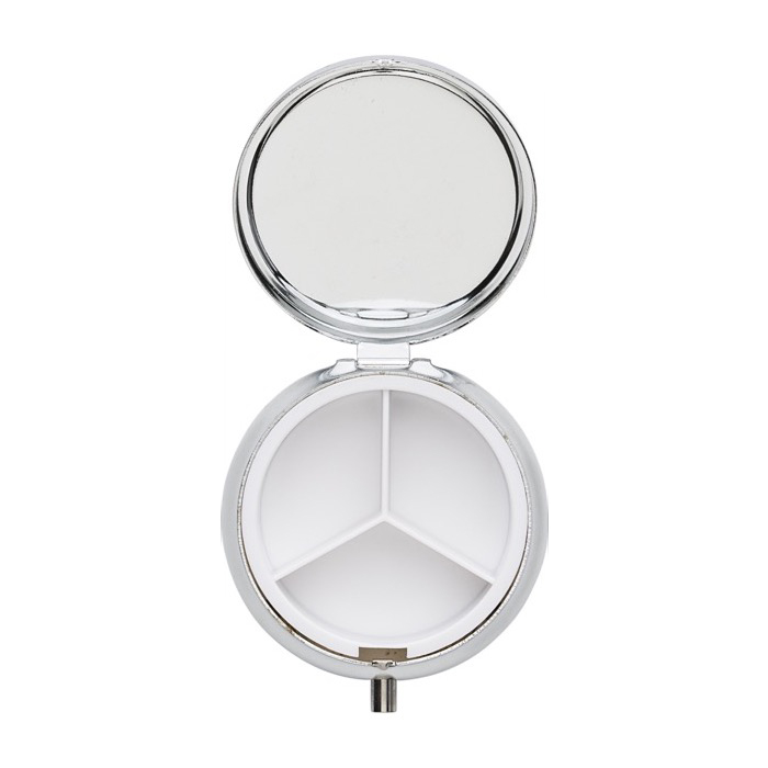 Pastillero redondo metálico con tres secciones y espejo Mirror