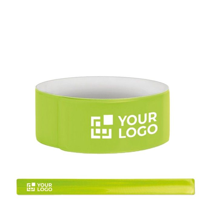 Pulsera reflectante verde neón para máxima visibilidad y personalización express