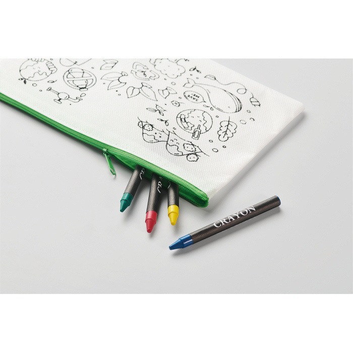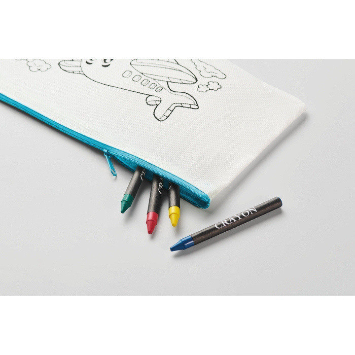 - Estuche infantil non woven coloreable con 4 lápices