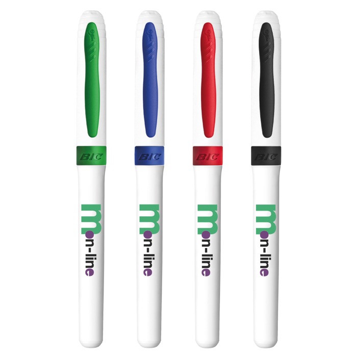Marcador de tinta resistente a la decoloración de la marca BIC, fabricado con un material que garantiza una escritura brillante y de secado rápido. Diseñado para ofrecer una experiencia de escritura limpia y precisa, este marcador cuenta con un grip de goma que proporciona mayor comodidad y control durante su uso. Ideal para empresas que buscan herramientas de escritura confiables y de alta calidad, este marcador es un bestseller en su categoría. Perfecto para su uso en oficinas, presentaciones o como parte de un kit promocional para clientes y empleados.
