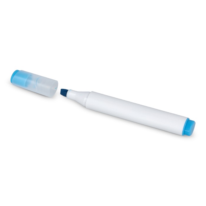 Marcador de RPET de azul transparente con tinta de distintos colores