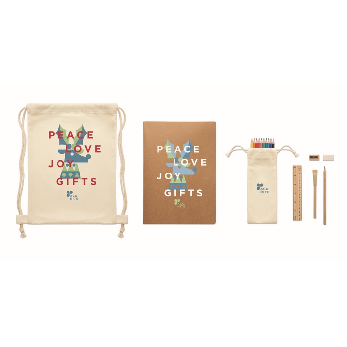 - Kit de dibujo infantil personalizado con bolsa de algodón