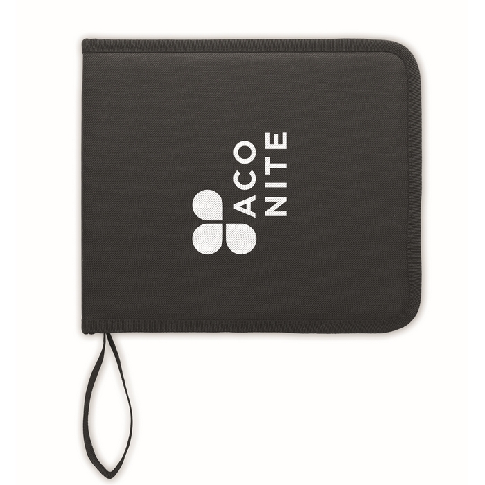 - Estuche plegable con cremallera, ideal para personalización y eventos