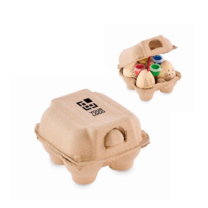 Set de pintura de huevos de Pascua de madera, acompañado de 4 acuarelas al agua y un pincel, todo presentado en una huevera de cartón. Cada huevo de madera es una base perfecta para la creatividad, permitiendo aplicar las acuarelas de manera sencilla y limpia. El pincel incluido facilita la aplicación del color, mientras que la huevera de cartón ofrece un almacenamiento práctico y ecológico. Ideal para empresas que buscan fomentar la creatividad en sus equipos o como parte de campañas de marketing innovadoras. Además, el servicio Express asegura una entrega rápida y eficiente.
