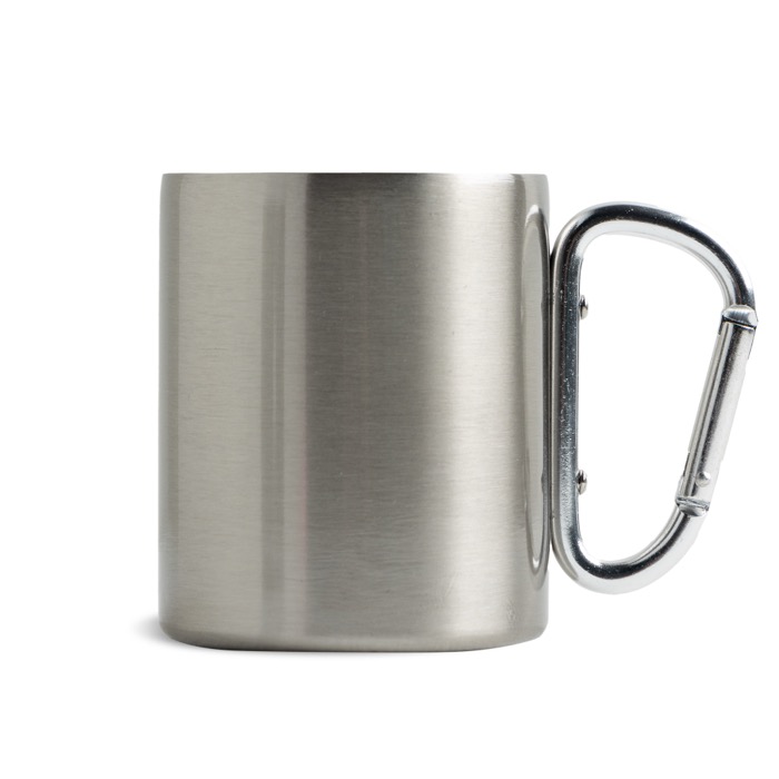 Tazas personalizadas de acero inox con asa de mosquetón en 220ml