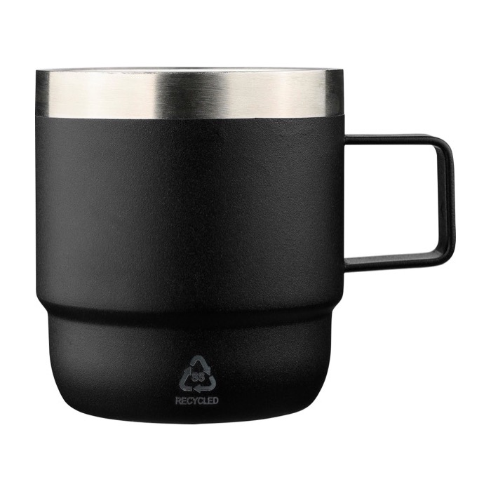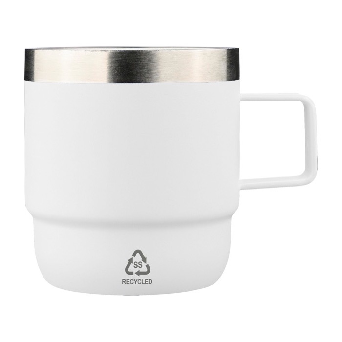 Taza de acero inoxidable con doble pared, pensado para entornos corporativos donde se busca un artículo compacto y consistente. El interior combina acero inoxidable 304 con recubrimiento cerámico para mejorar la higiene y reducir la transferencia de sabores y olores. El exterior es de acero inoxidable 201 e incorpora asa para un agarre cómodo. Incluye logotipo de acero inoxidable grabado a láser en la parte frontal y se entrega en caja individual de cartón marrón, útil para acciones de bienvenida o eventos internos.