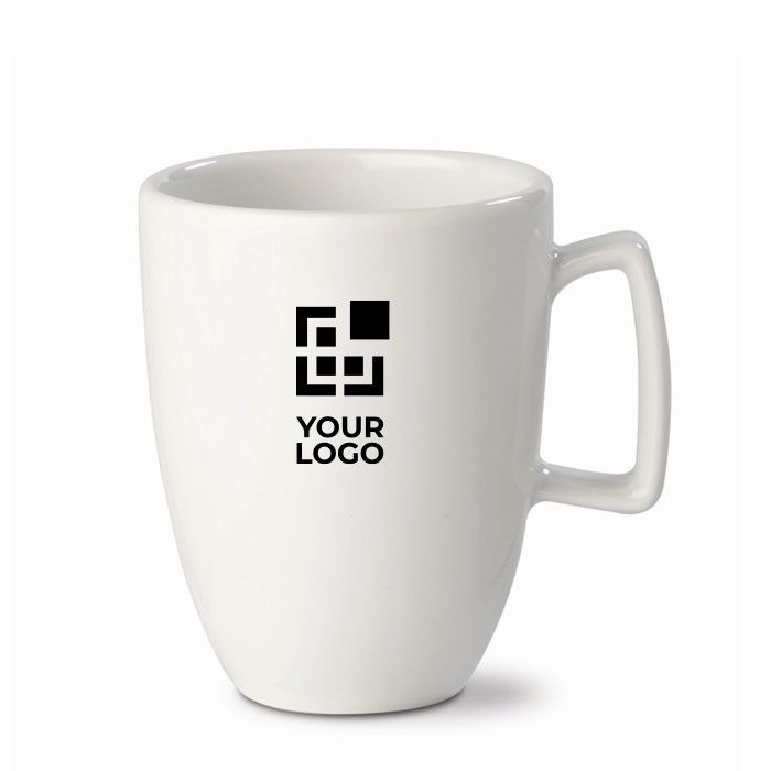 Taza blanca de cerámica con asa rectangular hecha en EU 230ml