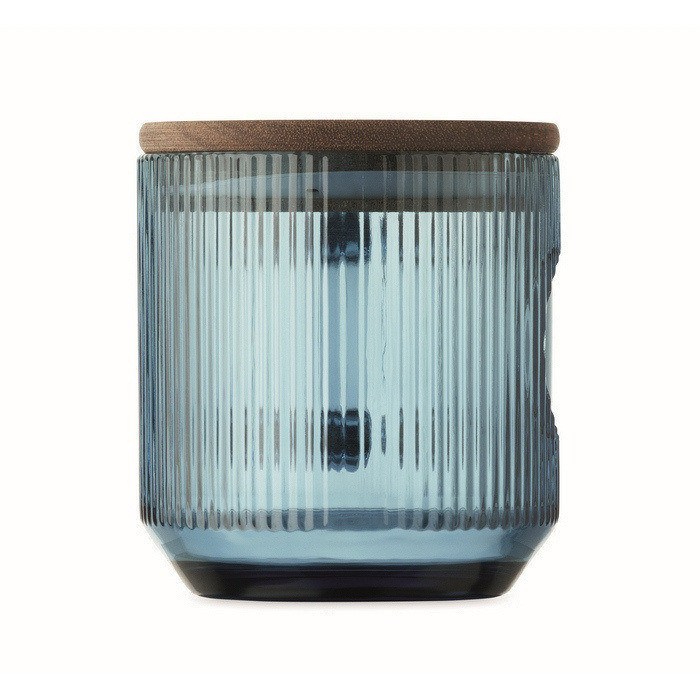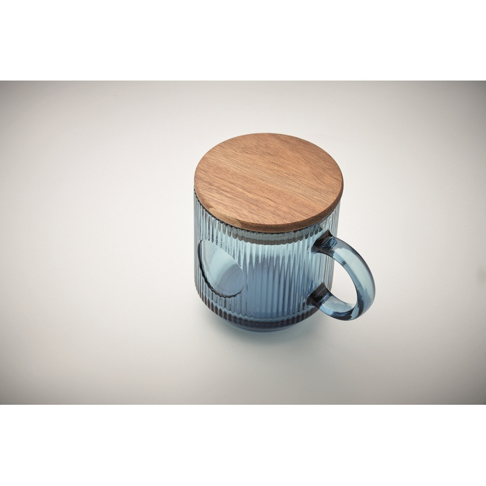 - Taza de cristal estriado con tapa de acacia FSC®-certified