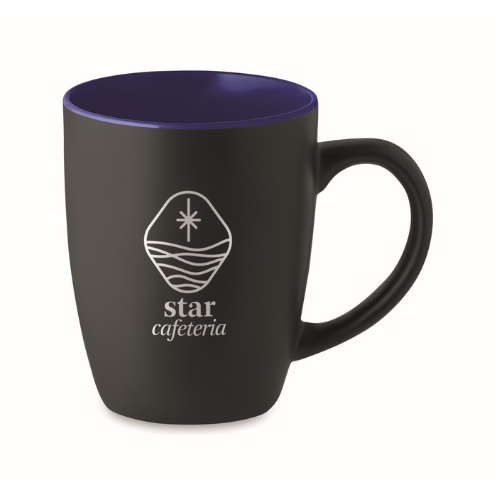 Taza con exterior en color negro y con interior en tono brillante a elegir. Una opción original para dar visibilidad a tu logo sin renunciar a un toque de color.