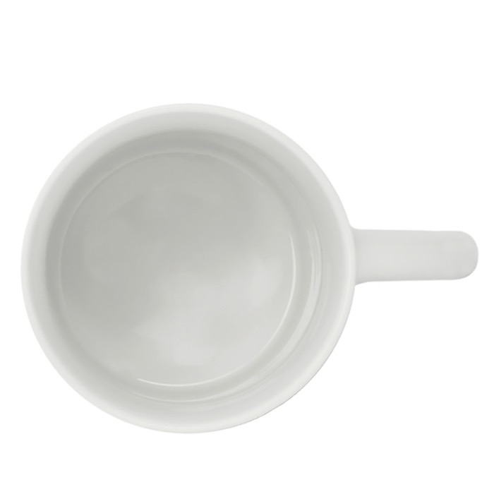 Taza de porcelana blanca con asa de medio circulo hecha en EU 300ml