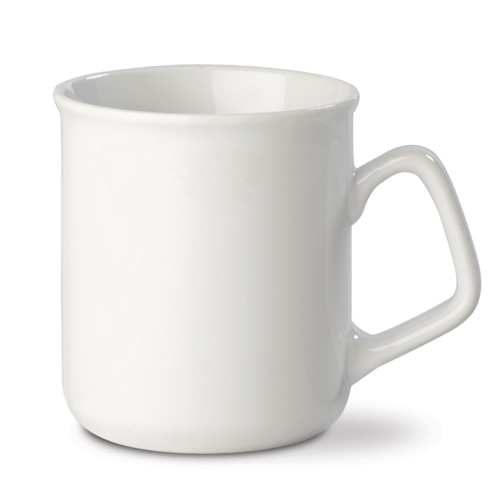 Taza de porcelana blanca con borde redondo y capacidad de 280ml