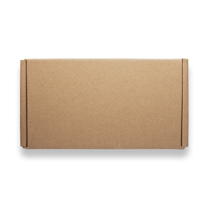 Dos tazas de café personalizadas presentadas en caja de papel kraft, las cuales se pueden personalizar con tu logotipo para entregar en una acción publicitaria.