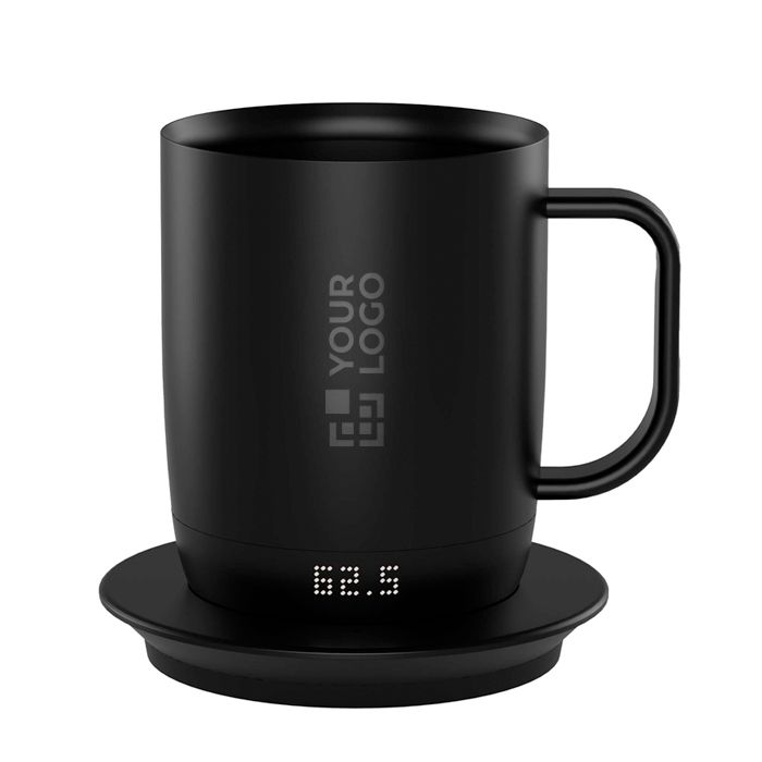 Taza inteligente con sistema de control de temperatura para mantener la bebida en el punto deseado durante hasta 1,5 horas por carga. Incorpora batería de larga duración y posavasos de carga para conservar el calor de forma continua cuando se coloca sobre la base. La pantalla LED (diodo emisor de luz) facilita el ajuste entre 50 °C y 62,5 °C según el tipo de bebida. Cuenta con impermeabilidad IPX6 (protección frente a chorros de agua) para enjuague bajo el grifo, aunque se recomienda lavado a mano. Opción práctica para oficinas, recepciones y acciones de marca con uso diario.