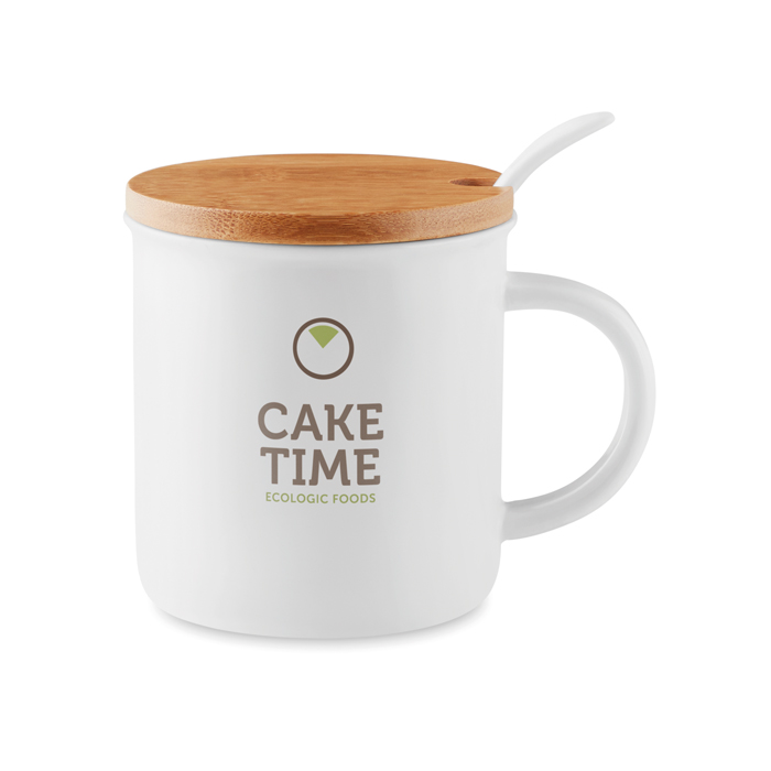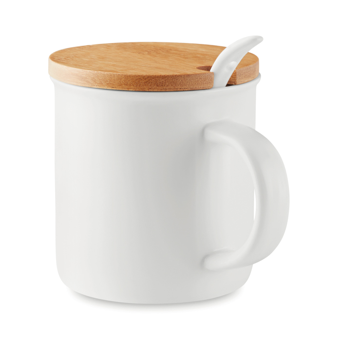 Taza de porcelana con tapa de bambú y cuchara: el regalo promocional que destaca en calidad y diseño