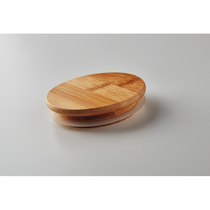 Taza de vidrio de doble pared con asa de vidrio y tapa de bambú 300ml