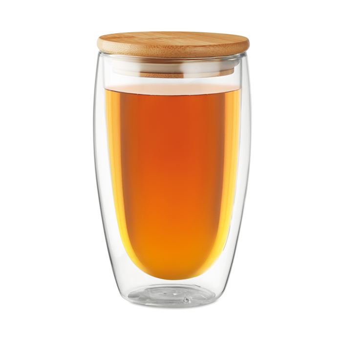 Vaso de cristal de borosilicato de doble capa, diseñado para ofrecer durabilidad y resistencia térmica. La tapa de bambú, acompañada de una junta de silicona, asegura un cierre hermético, manteniendo la temperatura de las bebidas por más tiempo. Con una capacidad de 450 ml, es ideal para disfrutar de una generosa porción de té o café. Apto para microondas y lavavajillas, facilita su uso y limpieza diaria. El bambú, al ser un material natural, puede presentar variaciones de color, añadiendo un toque único a cada pieza. Perfecto para empresas que buscan un regalo corporativo funcional y elegante, ideal para oficinas o eventos de marketing.