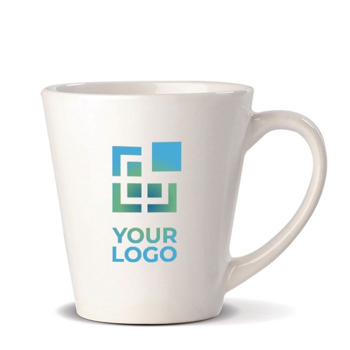 Taza cónica de cerámica diseñada para marcaje en sublimación. Con una capacidad de 350 ml, esta taza es ideal para personalizar con cualquier diseño que desees, ofreciendo un toque distintivo a tus campañas. Su material resistente permite su uso en microondas y lavavajillas, garantizando comodidad y durabilidad en entornos corporativos. Perfecta para oficinas, eventos o como parte de un kit de bienvenida, esta taza puede ser una herramienta eficaz para reforzar la identidad de marca o como regalo promocional.