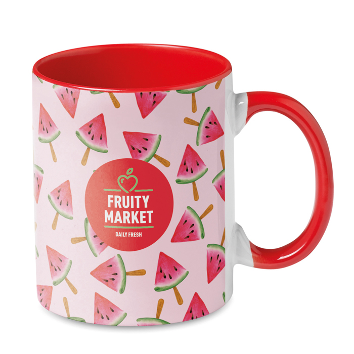 Taza de cerámica sublimada, ideal para personalización. Con detalles de color en el interior y el asa, permite una alineación cromática perfecta con cualquier diseño. Su capacidad de 350 ml es adecuada para bebidas calientes o frías. El acabado especial para sublimación garantiza resultados visualmente atractivos. Apta para lavavajillas, lo que facilita su limpieza y mantenimiento. Se entrega en bolsa y caja blanca individual, asegurando su protección. Como producto bestseller, es una opción popular para empresas que buscan artículos promocionales personalizados. Perfecta para regalos corporativos o campañas de marketing visualmente impactantes.
