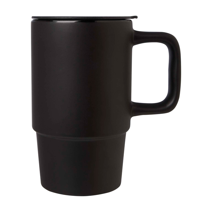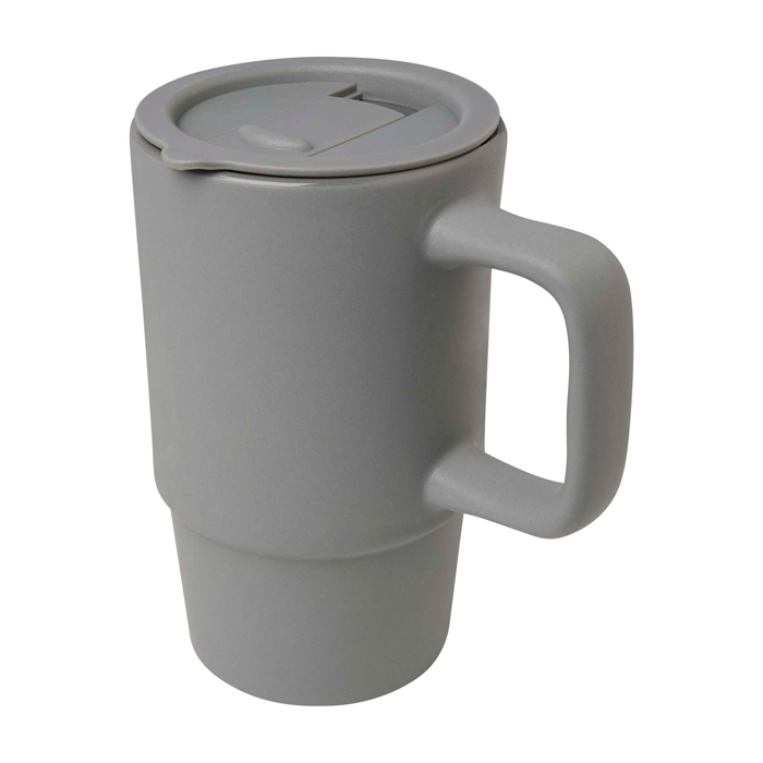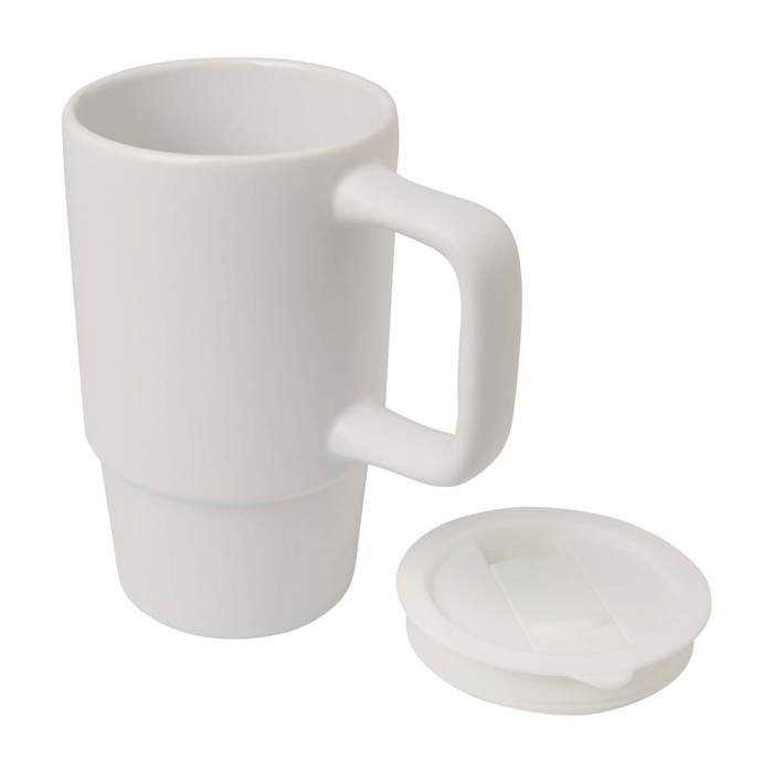 Taza de cerámica con tapa de plástico y asa grande 450ml