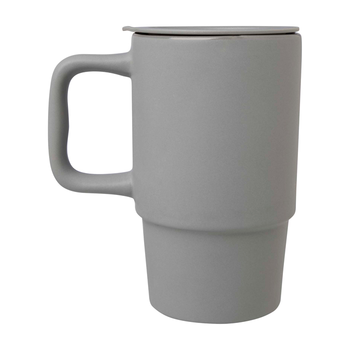 Taza de cerámica con asa de gran tamaño y tapa de plástico a prueba de derrames, diseñada para ofrecer comodidad y seguridad en cada uso. Su acabado exterior mate le confiere un toque elegante y moderno, ideal para cualquier entorno de trabajo. Con una capacidad de 450 ml, es perfecta para disfrutar de bebidas calientes o frías durante largas jornadas laborales. Apta para lavavajillas, lo que facilita su limpieza sin preocuparse por el método de impresión. Se presenta en una caja de cartón reciclado, subrayando su compromiso con la sostenibilidad. El servicio Express asegura una entrega rápida y eficiente. Ideal para oficinas, eventos corporativos o como parte de un kit de bienvenida para empleados.