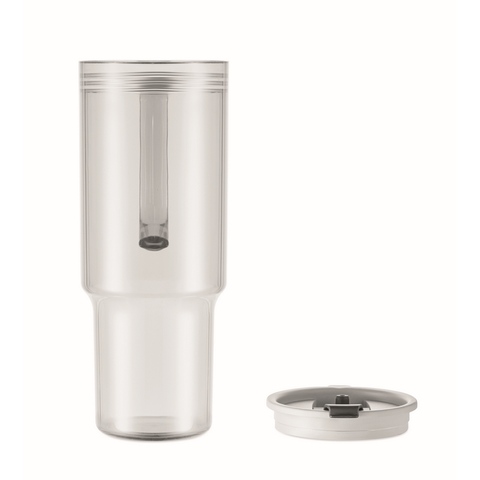 Vaso portátil translucido de RPET con tapa y pajita 1.2L