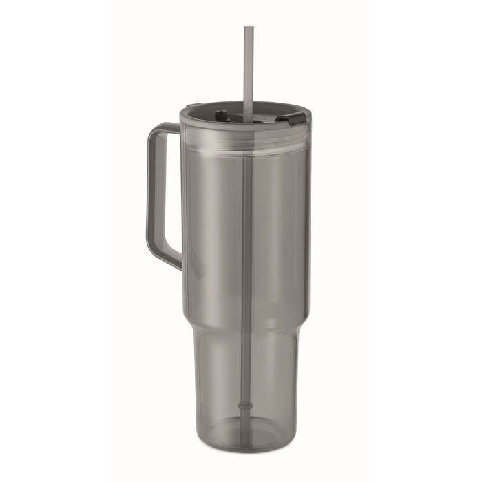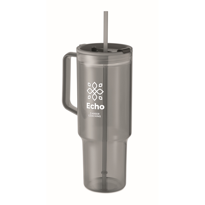 Vaso con tapa y pajita de 1,2 L que minimiza recargas y salpicaduras. Personaliza con tu logotipo y destaca en eventos y oficinas. Aumenta la visibilidad de tu marca.