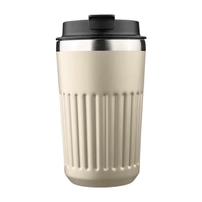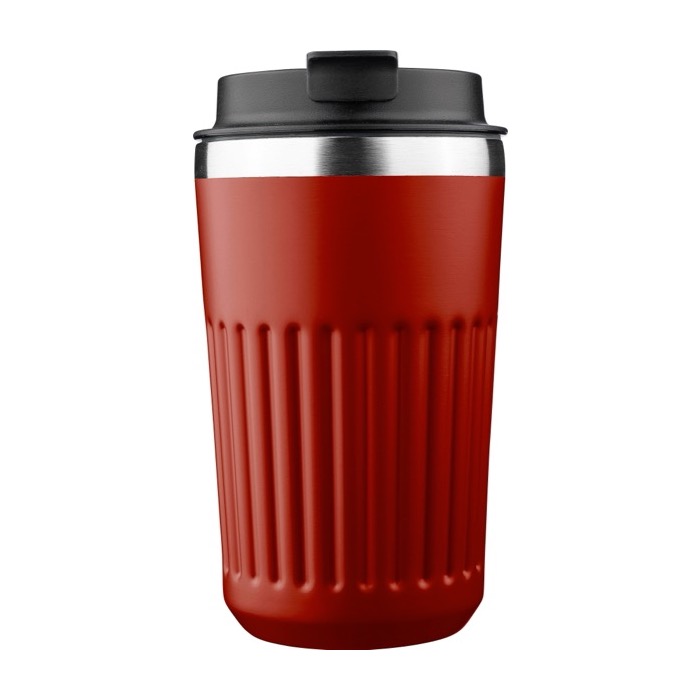 Vaso para llevar de acero inoxidable reciclado con pared doble y textura rugosa exterior, pensado para el uso diario en oficina o desplazamientos. El interior está fabricado en acero inoxidable 304 y el exterior en acero inoxidable 201, una combinación práctica para mantener la temperatura y resistir el ritmo de trabajo. Incluye tapa de plástico para un cierre cómodo. Recomendado para acciones internas, eventos y merchandising con logo.