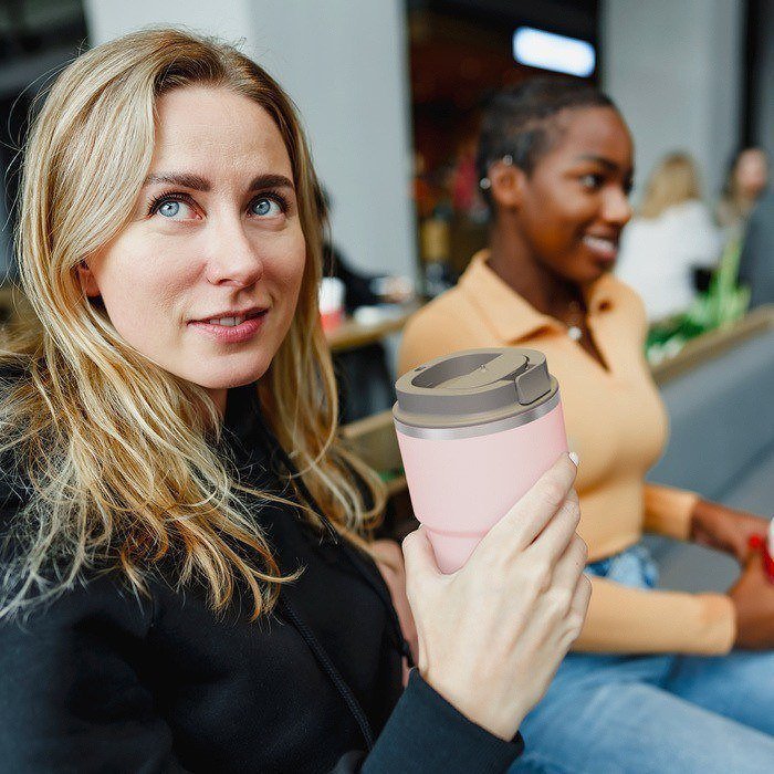 - Capacidad de 355 ml, compatible con la mayoría de portavasos