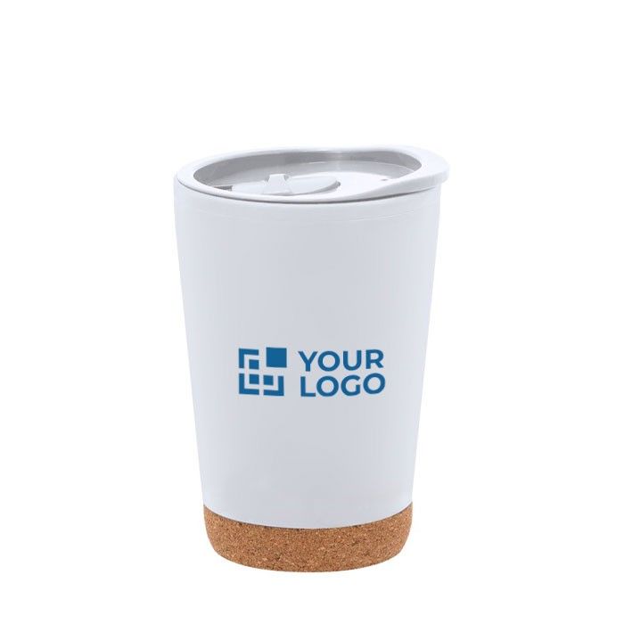 Vaso térmico de 260 ml con base de corcho y tapa dosificadora para eventos inolvidables