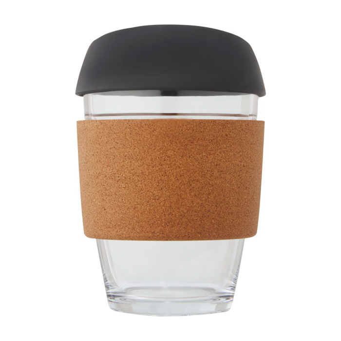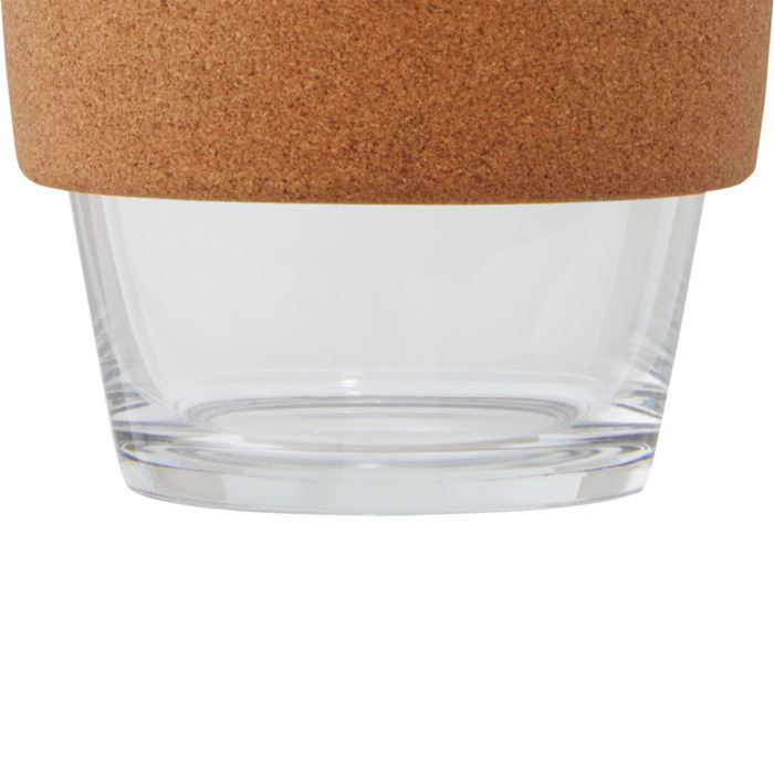 Vaso de 360ml fabricado en vidrio borosilicato, diseñado para ofrecer durabilidad y resistencia térmica. Incluye un ligero agarre de corcho que facilita su manejo y una tapa extraíble de silicona de grado alimentario, asegurando que la bebida se mantenga en buen estado sin riesgo de contaminación química. Su diseño compacto permite que se ajuste bajo la mayoría de las cafeteras, optimizando su uso en entornos de oficina. Es apto para lavavajillas, siempre que se retire el agarre de corcho, y se presenta en una caja de cartón reciclado, subrayando su compromiso con la sostenibilidad. Ideal para personalización con el logo de la empresa, ya sea a color o mediante grabado láser, este vaso es perfecto para campañas de marketing corporativo o como regalo para empleados y clientes.
