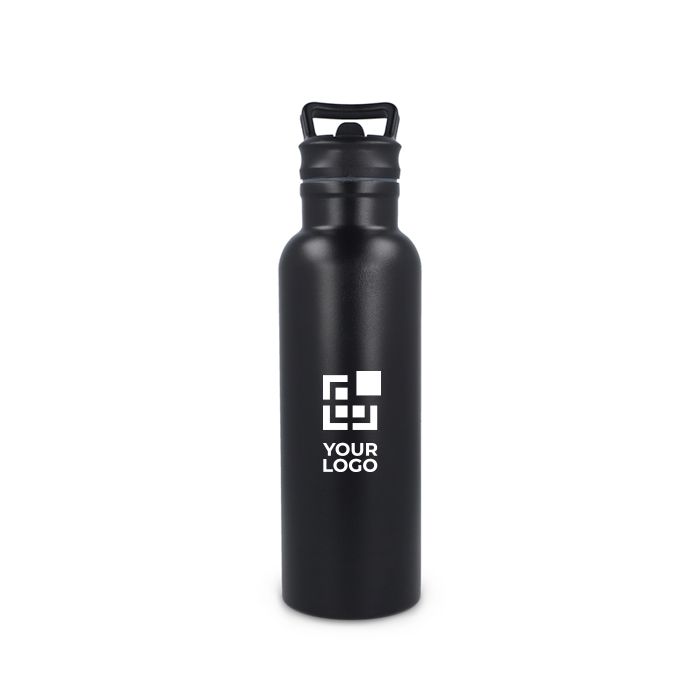 Botella térmica de acero inoxidable con aislamiento al vacío y acabado mate para uso diario en oficina o fuera de ella. Mantiene las bebidas frías hasta 24 horas y calientes hasta 8 horas, facilitando planificar jornadas largas sin cambios de temperatura. La tapa incorpora boquilla para beber con comodidad y sistema antigoteo para evitar derrames en mochilas o maletines. Incluye asa de transporte para llevarla en mano y se entrega en caja de regalo, adecuada para acciones de RRHH o eventos.