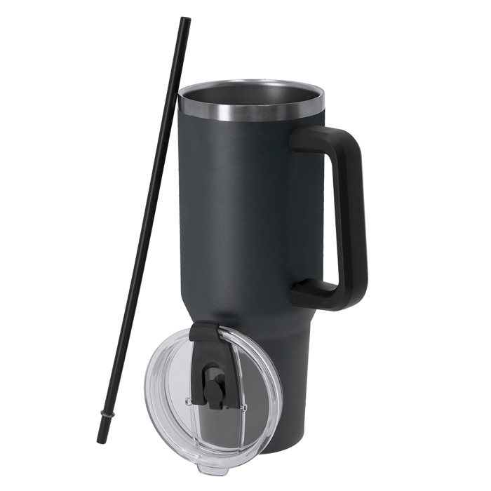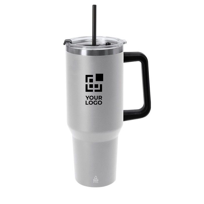 Vaso de acero inoxidable reciclado con pajita y orificio 1.2L