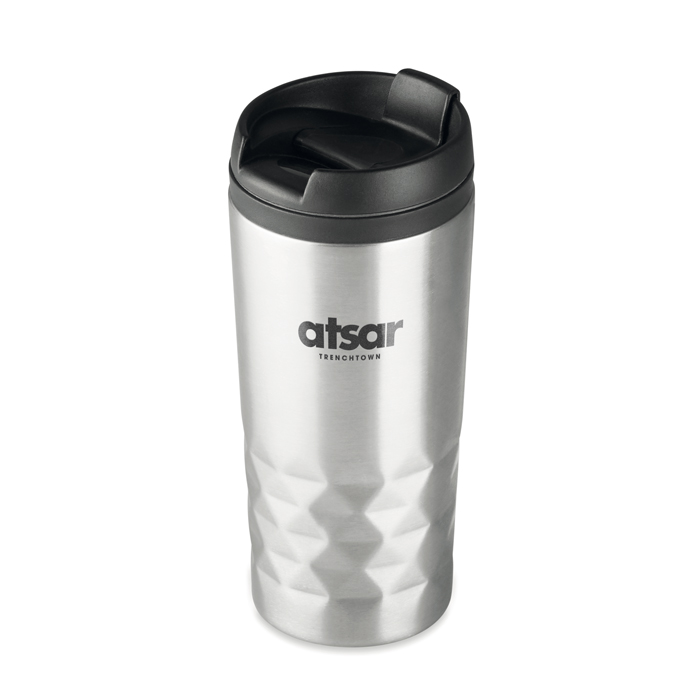 Experimenta la originalidad y elegancia de esta taza térmica en primera persona. Un bestseller con el que acertar gracias a su original diseño y sus posibilidades de personalización (láser circular, grabado láser, tampografía o serigrafía circular). Con un acabado en corte diamante en su estructura de acero inoxidable, estas tazas no solo capturan la atención, sino que también aseguran durabilidad y estilo. Su capacidad de 280 ml es perfecta para disfrutar de tus bebidas favoritas, mientras que la tapa de plástico garantiza un cierre seguro. Apta para lavavajillas, esta pieza combina estética y practicidad. Aunque te recomendamos consultar con atención al cliente la resistencia a los lavados de la impresión. Perfecta para llevar donde sea.