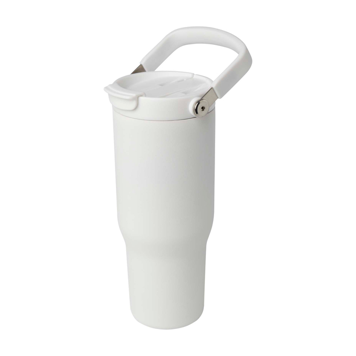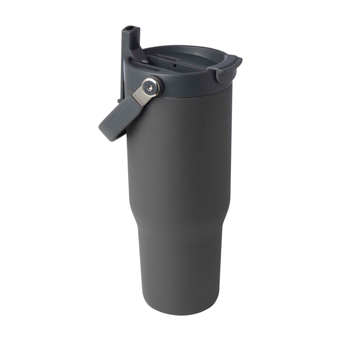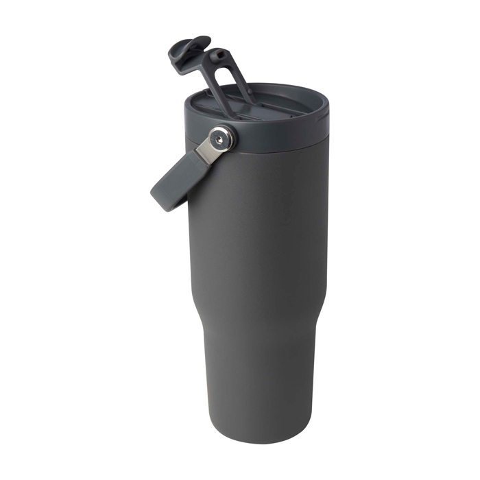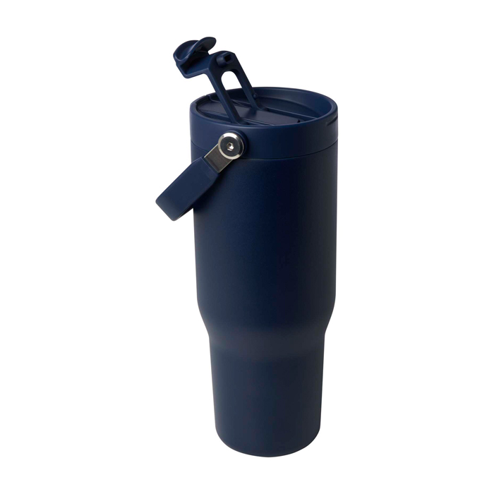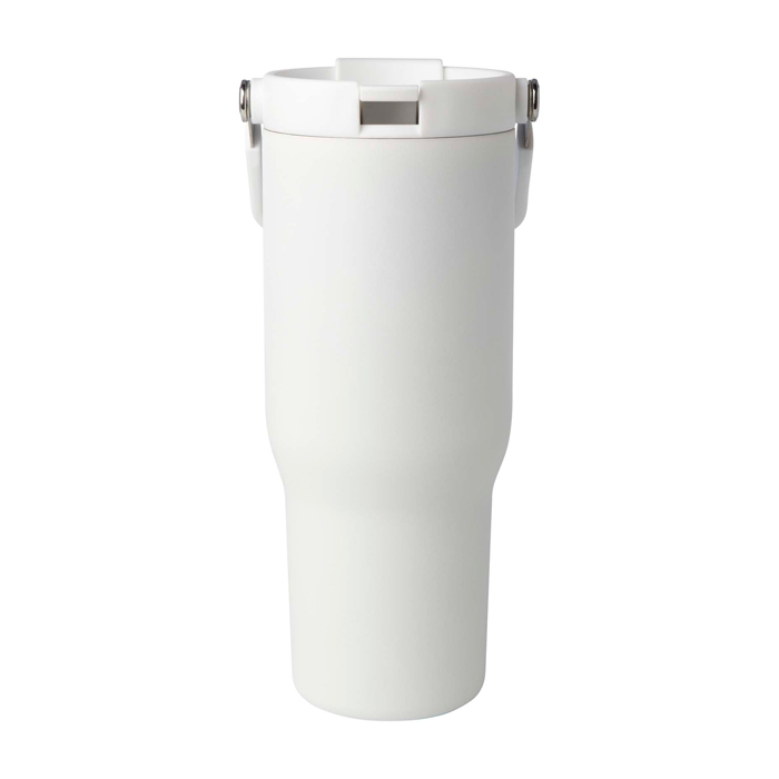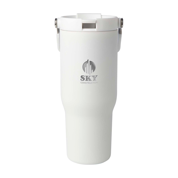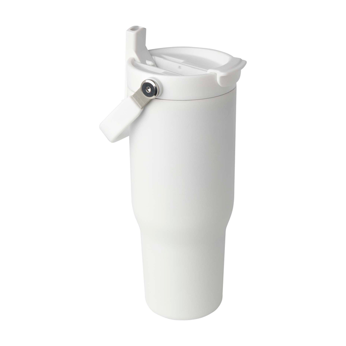 Vaso de acero inoxidable con aislamiento al vacío de cobre de doble pared, diseñado para mantener la temperatura de tus bebidas por más tiempo. Con una capacidad de 900 ml, es ideal para largas jornadas laborales o reuniones. Su tapa multifuncional incluye una pajita plegable y una abertura abatible con asa integrada, facilitando su transporte y uso. Compatible con la mayoría de portavasos de coche, es perfecto para viajes o el día a día. Presentado en una caja de regalo de cartón reciclado, subraya su compromiso con la sostenibilidad. Ideal para empresas que buscan productos prácticos y ecológicos para sus empleados o clientes.