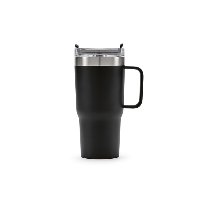 Taza de acero inoxidable reciclado, diseñada para mejorar cada sorbo con una capacidad de 580 ml (490 ml netos). Su aislamiento de doble pared asegura que las bebidas se mantengan a la temperatura ideal, ya sea caliente o fría. La tapa giratoria se cierra herméticamente, evitando derrames y facilitando su uso en movimiento. Apta para lavavajillas, simplifica la limpieza diaria. Se entrega en una caja de papel kraft reciclado, subrayando su compromiso con la sostenibilidad. Ideal para empresas que buscan soluciones prácticas y ecológicas, perfecta para reuniones, eventos corporativos o como parte de un kit de bienvenida para empleados.