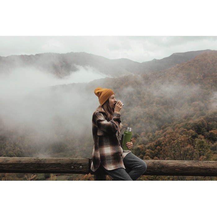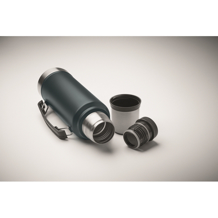 Termo de acero inoxidable reciclado con 1 vaso y asa lateral 1L