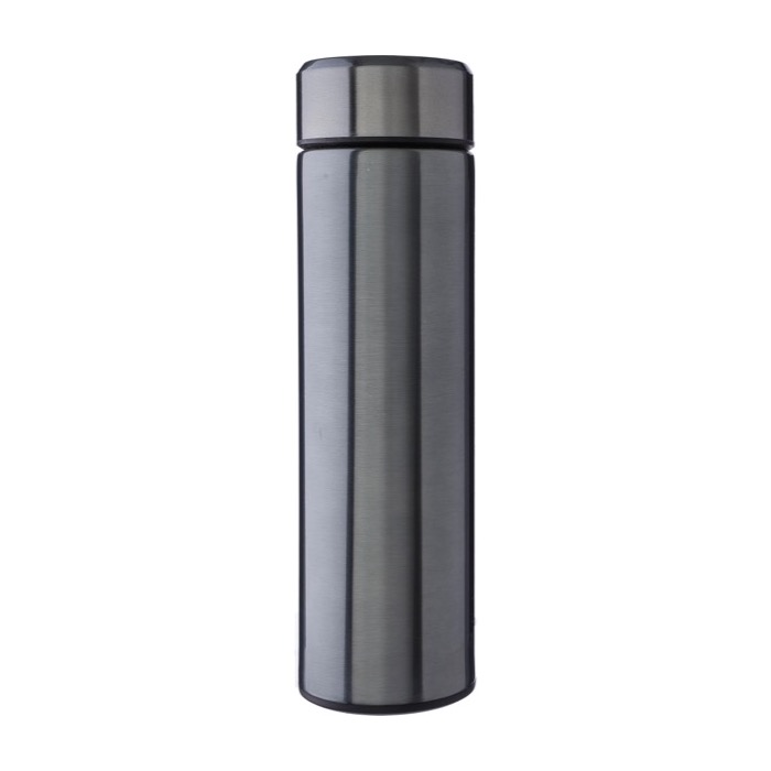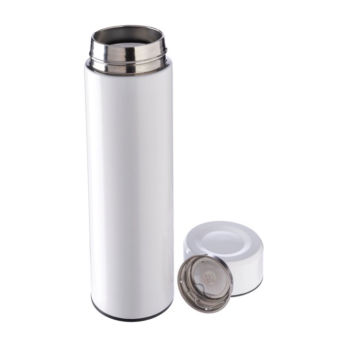 Termo de acero inoxidable de doble pared, con capacidad de 425 ml, diseñado para mantener tus bebidas a la temperatura óptima. Fabricado con interior de acero inoxidable 304 y exterior de acero inoxidable 201, garantiza durabilidad y resistencia. Incluye un colador de té incorporado y extraíble, ideal para infusiones frescas y aromáticas. Presentado en una caja de cartón marrón, es una opción práctica y elegante para cualquier entorno corporativo. Perfecto para oficinas, salas de reuniones o como regalo promocional, este termo combina funcionalidad y estilo, ofreciendo una solución eficiente para disfrutar de bebidas calientes o frías durante la jornada laboral.
