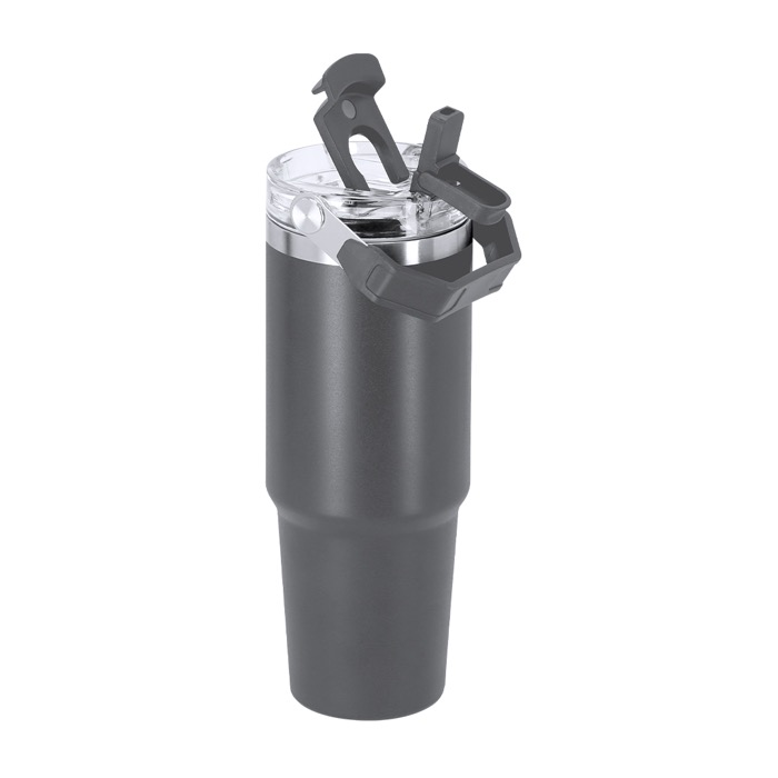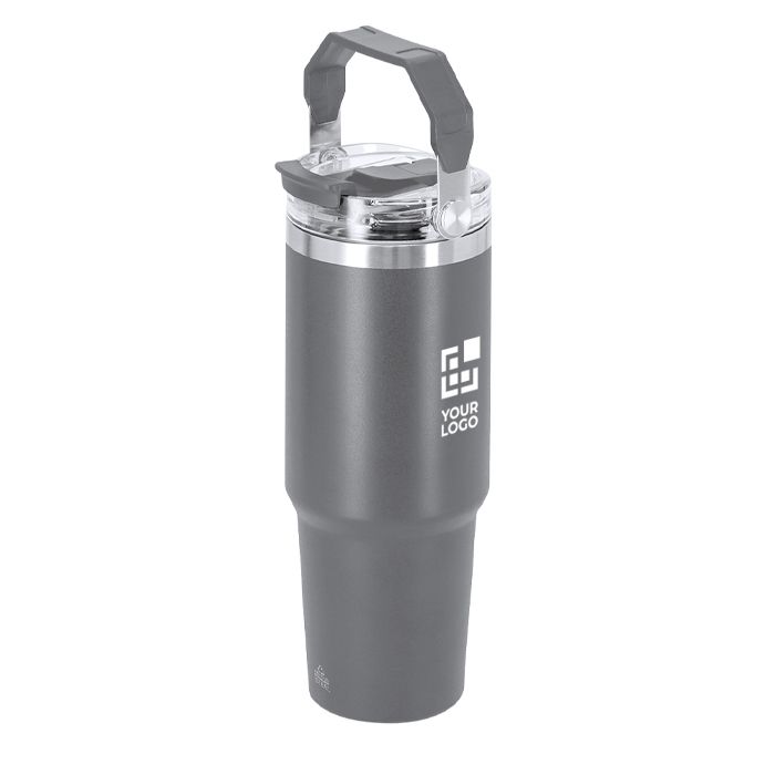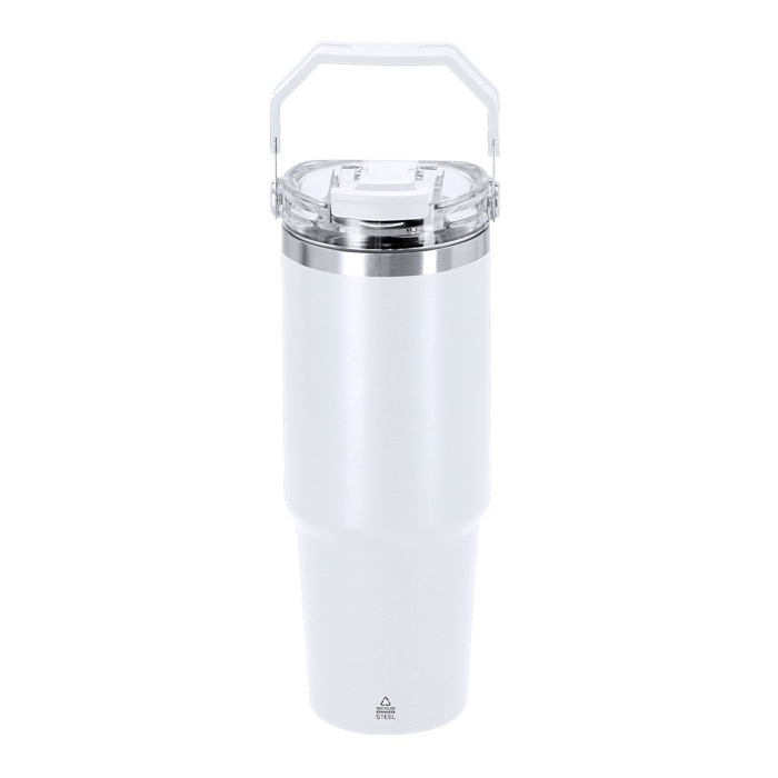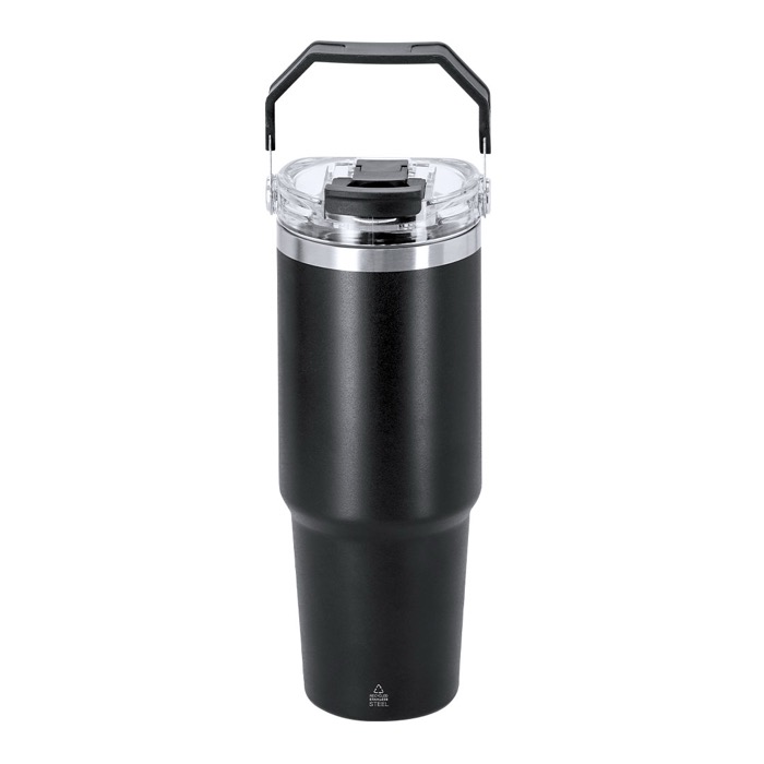 Vaso térmico de acero inoxidable reciclado con doble pared y capacidad de 900ml, pensado para el uso diario en oficina, viajes o eventos. Incorpora doble sistema de bebida para adaptarse a distintos hábitos: orificio con cierre hermético y pajita integrada. La tapa con sellado hermético ayuda a evitar derrames durante el transporte, y el asa facilita llevarlo de forma cómoda. Libre de BPA (bisfenol A). Mantiene el calor hasta 3 horas y el frío hasta 6 horas, útil como regalo corporativo con marcaje.