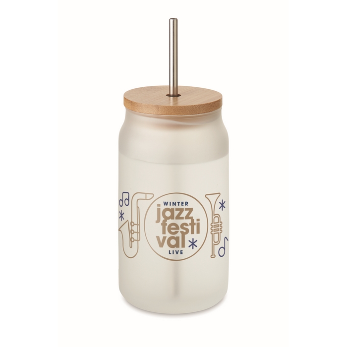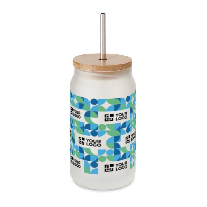 Tarro impreso con imagen para cóctel con pajita de acero y tapa 400ml