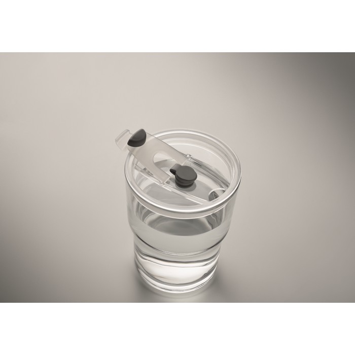 Vaso de cristal con tapa antigoteo y pajita de cristal 300ml