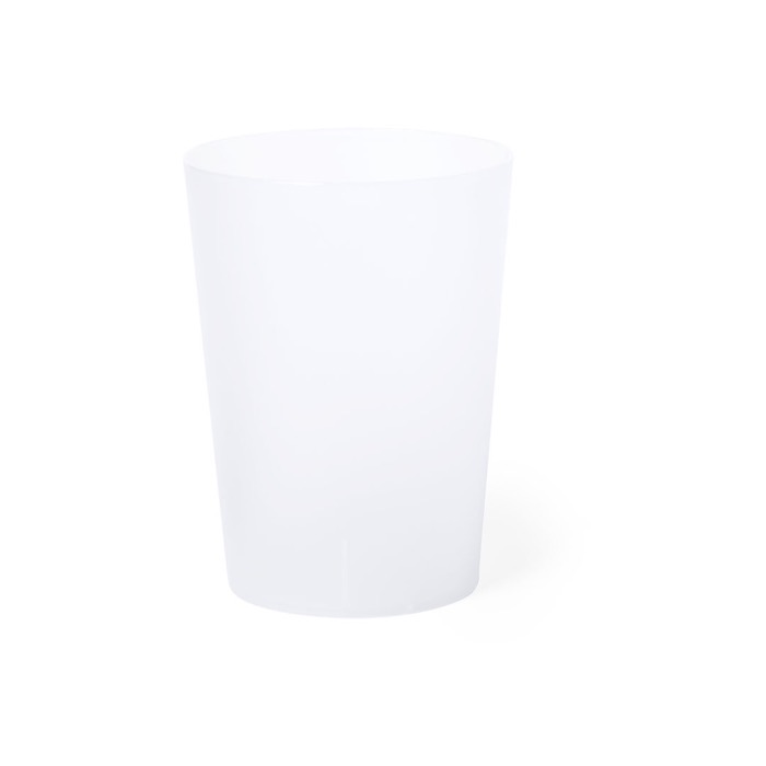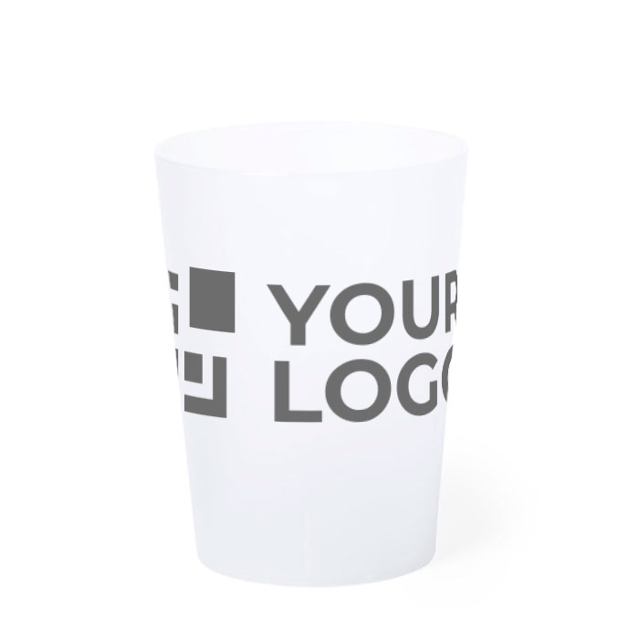 Vaso sencillo de plástico PP de 500 ml. Esta es una de las opciones populares para fiestas, conciertos y otros eventos ya que es simple, permite dar protagonismo a tu logotipo, es reutilizable y su precio es muy bajo. Además, este modelo es de acabado frosted, dando un resultado visual distinto al de otros recipientes. No cuenta con embalaja individual y es de fabricación europea. Asimismo, permite una impresión circular de tu logotipo, haciendo que sea mucho más visible. Su envío estándar rápido, por lo que, si la cantidad no es muy alta, estará en pocos días listo para tu evento.